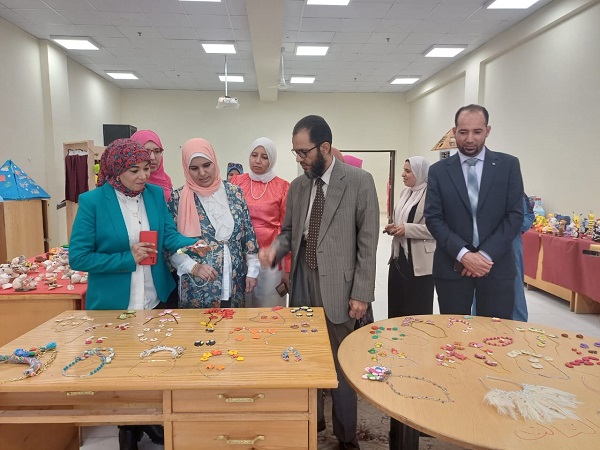 بحضور عدد من اعضاء هيئة التدريس بالقسم والهيئة المعاونة وشمل المعرض أعمال فنية من الصلصال ومشغولات الحلي والتزيين.