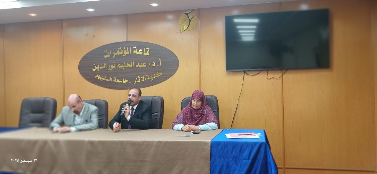 عقد اليوم السيد الأستاذ الدكتور/ محمد كمال خلاف – عميد الكلية - اجتماعا بالسادة أعضاء هيئة التدريس والهيئة المعاونة بالكلية، في تمام الحادية عشر صباحا بقاعة ا.د/ عبد الحليم نورالدين، وذلك بحضور السيد الأستاذ الدكتور/ عبد الرحمن السروجي وكيل الكلية لشئون التعليم والطلاب ، والسيد الأستاذ الدكتور/ أسماء محمد اسماعيل وكيل الكلية لشئون خدمة المجتمع وتنمية البيئةو السادة رؤساء الأقسام العلمية والسادة أعضاء هيئة التدريس وأعضاء الهيئة المعاونة.
