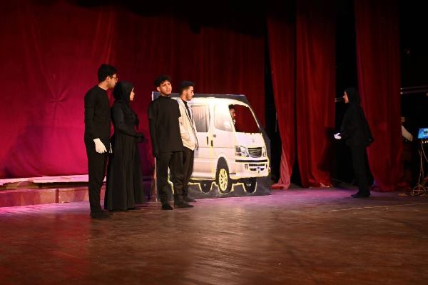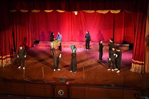 ومشاركة طلاب وطالبات كلية التربية النوعية برسم اسكتشات تعبر عن مشاهد المسرحية والتي تناقش اشكال العنف ضد المرأة في المواصلات العامة في الفيوم