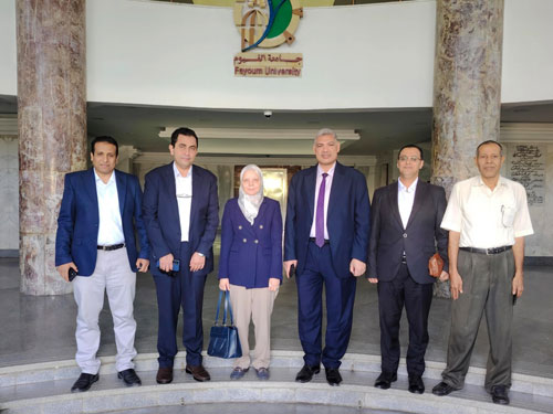 Under the auspices of Prof. Yasser Magdy Hatata, President of Fayoum University, Prof. Arafa Sabry Hassan, Vice President for Postgraduate Studies and Research, received Prof. Osama Galal Saqr, Director of the Laboratory Qualification Project for International Accreditation at the Projects Department of the Ministry of Higher Education. The meeting was held to hand over the twelfth cycle of the Laboratory Qualification Project for International Accreditation (LIAP) for the Thin Membrane Water Purification and Desalination Laboratory at the Faculty of Science (Project Code: LP12-049-FAY). The handover ceremony was attended by Prof. Samia Gouda, Dean of the Faculty of Science; Prof. Bothaina Youssef Fouad, Dean of the Faculty of Agriculture and Director of the Project Management Unit; Prof. Tamer Magdy, Director of the Center for Quality Assurance and Strategic Planning; Dr. Shaaban Saad El-Nisr, Deputy Director of the Project Management Unit at the University; Dr. Mohamed Ali Agha, Executive Director of the project; and a number of faculty members.