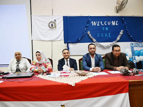 Sous le haut patronage du Prof. Yasser Magdy Hatata, président de l'Université du Fayoum, le Prof. Assim El-Essawy, vice-président chargé du service communautaire et du développement environnemental et superviseur de la Faculté d'informatique et d'intelligence artificielle, a assisté à la cérémonie d'accueil des nouveaux étudiants le lundi 6 octobre 2025. Etaient présents à la cérémonie : la Prof. Sherine Tayeh, vice-doyenne des études supérieures, le Prof. Mustafa Rabie, chef du département d'informatique, la Prof. Rasha El-Badry, chef du département des systèmes d'information, le Dr. Ahmed Salama, coordinateur des activités étudiantes, ainsi que plusieurs membres du corps enseignant, du personnel et des étudiants. Le Prof. Assim El-Essawy a souligné que l'université est l'une des étapes les plus importantes de la vie d'un étudiant, car elle lui permet d'acquérir des compétences en matière de travail en équipe et de responsabilité. Il a appelé les étudiants à participer activement aux activités étudiantes dans divers domaines, à assurer une présence assidue aux cours et à s'investir pleinement dans la réussite scolaire. Il a souligné l’engagement de l’administration universitaire à fournir un soutien complet à tous les étudiants.