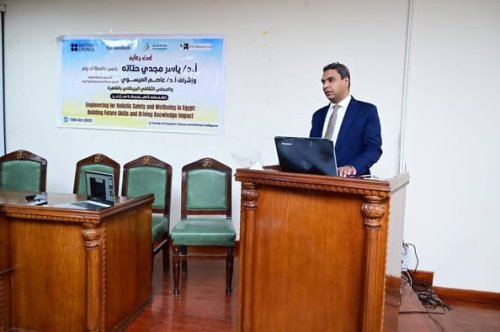 من جانبه، تناول البروفيسور نيدندمب كالفور الحديث حول مفهوم الصحة والسلامة المهنية بوصفه أحد المتطلبات الأساسية لتجنّب المخاطر في بيئة العمل الهندسي، مشيرًا إلى أهمية تطوير المقررات الدراسية لتتواكب مع احتياجات سوق العمل. كما دعا إلى التركيز على الجانب العملي واكتساب الطلاب مهارات وخبرات متنوعة، مع ضرورة فتح قنوات للتبادل الطلابي بين الجامعات المصرية ونظيراتها بالمملكة المتحدة. وقد استمع سيادته إلى تساؤلات الحاضرين وأجاب عنها خلال النقاش المفتوح.