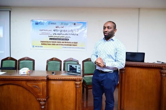 تحت رعاية الأستاذ الدكتور ياسر مجدي حتاته، رئيس جامعة الفيوم، استقبل الأستاذ الدكتور عاصم العيسوي، نائب رئيس الجامعة لشؤون خدمة المجتمع وتنمية البيئة، البروفيسور نيدندمب كالفور، أستاذ الهندسة بجامعة جرينويش بالمملكة المتحدة، والدكتورة مروة عبد العظيم، مدير برامج التعليم، والأستاذ إبراهيم محمد، مسؤول برامج التعليم بالمجلس الثقافي البريطاني، وذلك على هامش ورشة العمل حول "السلامة والصحة المهنية في مجال الهندسة"، بحضور الأستاذ الدكتور أحمد عبد اللطيف، مدير مركز القياس والتقويم والأستاذ بكلية الهندسة بجامعة الفيوم، وعدد من أعضاء هيئة التدريس وطلاب الكلية وممثلي مؤسسات سوق العمل، وذلك اليوم الأربعاء الموافق 15 أكتوبر 2025، بكلية الحاسبات والذكاء الاصطناعي.