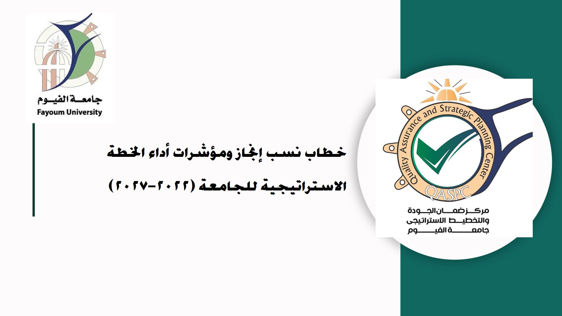 في إطار توجيهات أ.د ياسر مجدي حتاته - رئيس جامعة الفيوم، بمتابعة أعمال إنجاز الخطة الاستراتيجية لجامعة الفيوم (2022-2025) ؛ وفي هذا الإطار وتحت إشراف أ.د. عاصم فؤاد العيسوي، نائب رئيس الجامعة لشئون خدمة المجتمع وتنمية البيئة ورئيس مجلس إدارة مركز ضمان الجودة والتخطيط الاستراتيجي ، وبدعوة كريمة من معالي الأستاذ الدكتور / ياسر مجدي حتاته - رئيس الجامعة ؛ قام أ.د.تامر مجدى مدير مركز ضمان الجودة والتخطيط الاستراتيجي بجامعة الفيوم بعرض نسب إنجاز الخطة الاستراتيجية للجامعة في قطاعاتها المختلفة ؛ موضحًا سيادته ما تم إنجازه والمتبقي من أنشطة وأهداف جاري إنجازها واستكمالها تباعًا في الفترة المتبقية من الخطة ؛ وذلك يوم الأربعاء الموافق 29 أكتوبر .