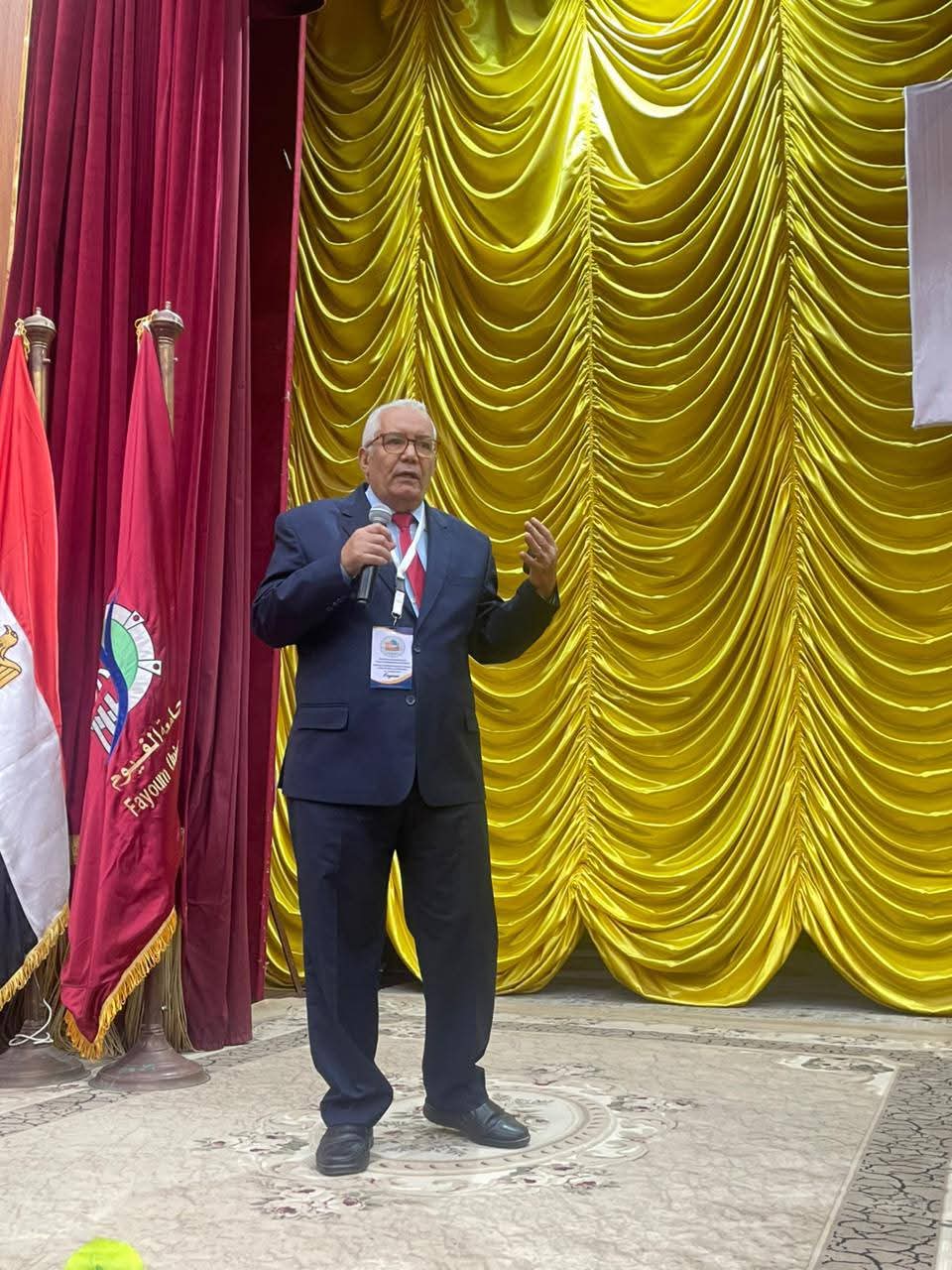 في إطار فعاليات المؤتمر الدولي الخامس لكلية الآثار – جامعة الفيوم، الذي يُعقد تحت عنوان "تحدّيات حماية التراث الثقافي في ظل الاضطرابات والكوارث"، انطلقت صباح اليوم الثلاثاء 21 أكتوبر 2025 الجلسة العلمية الأولى برئاسة كلٍّ من الأستاذ الدكتور محمد كمال خلاف، عميد كلية الآثار ورئيس المؤتمر، والأستاذ الدكتور عاطف منصور، عميد الكلية السابق ورئيس اللجنة العلمية للمؤتمر، والأستاذ الدكتور عبدالرحمن محمد السروجي، حيث شهدت الجلسة طرحًا علميًا متميزًا من نخبة من العلماء والخبراء من مصر والأردن، تناولوا من خلاله أحدث القضايا المرتبطة بحماية التراث واللغة العربية والتقنيات الحديثة في صون الآثار.