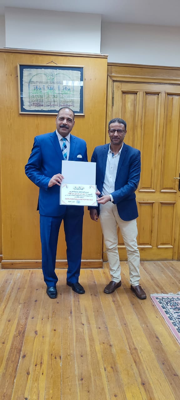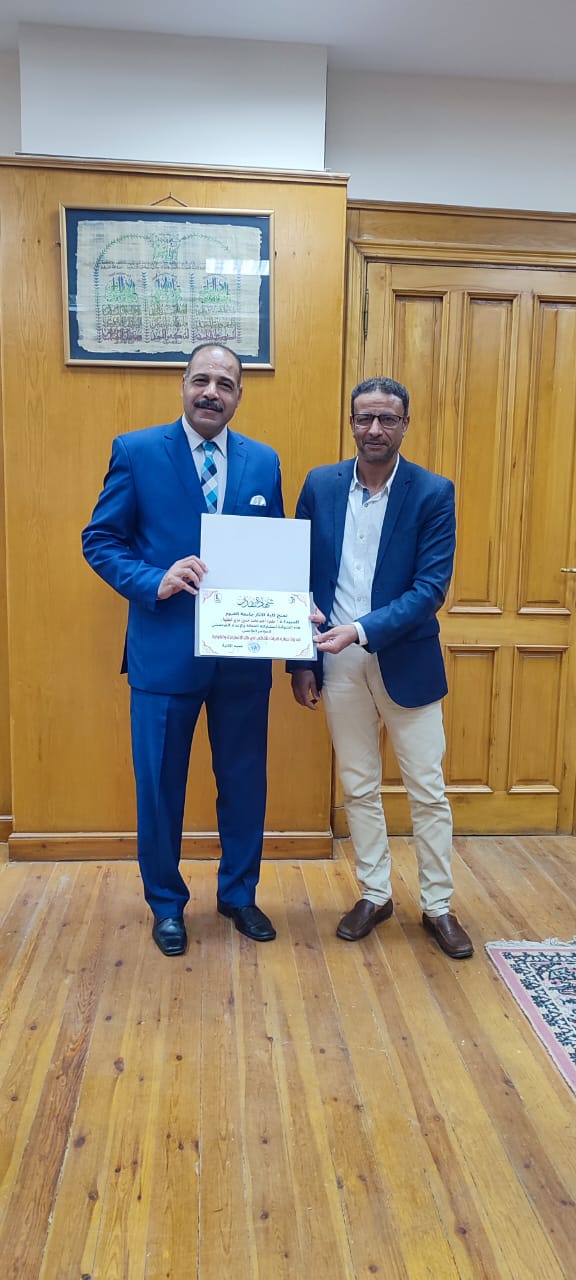 تكريم السادة الإداريين المشاركين في تنظيم المؤتمر الخامس بكلية الاثار من قبل السيد الأستاذ الدكتور/ محمد كمال خلاف. عميد الكليه