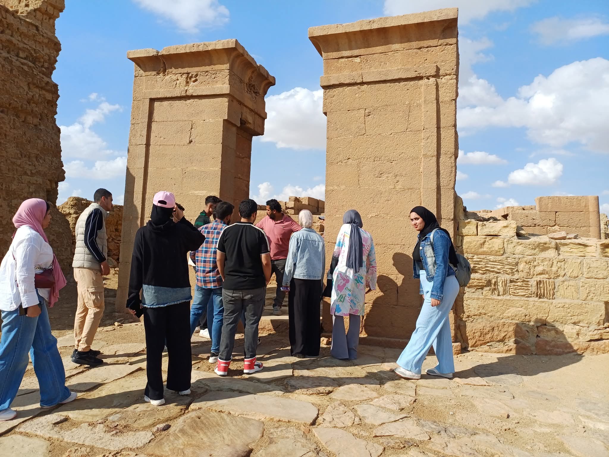 ثم توجهت المجموعة إلى موقع كوم أوشيم (كرانيس)، حيث جرت دراسة المعبد الجنوبي والشمالي والحمام، إلى جانب تفقد بقايا المنازل السكنية المتنوعة.