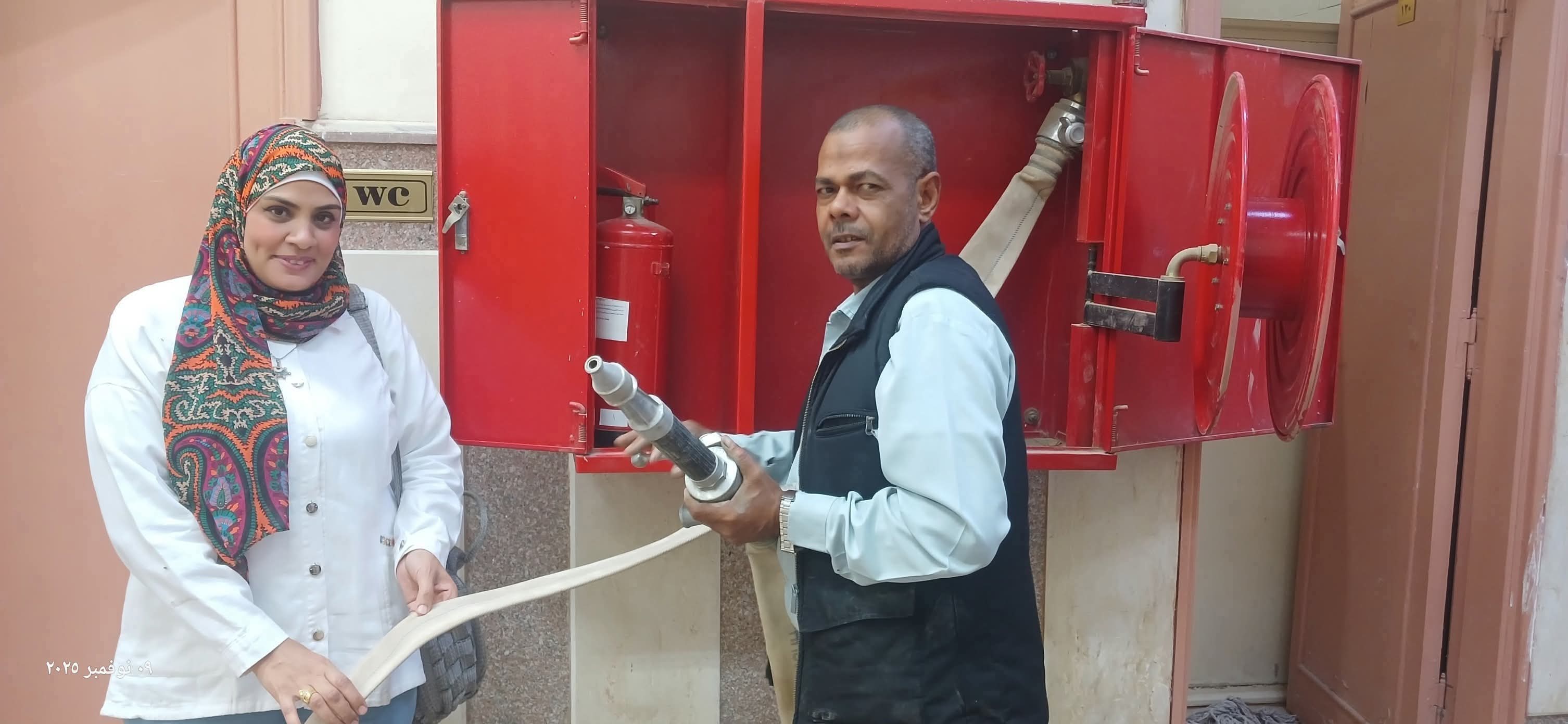 قامت وحدة إدارة الأزمات والكوارث بالكلية بمراجعة منظومة الحريق (خراطيم المياه والطفايات) يوم الأحد الموافق ٩/ ١١ / ٢٠٢٥م، بحضور كل من: أ.د أسماء محمد إسماعيل وكيل الكلية لشؤون خدمة المجتمع وتنمية البيئة، أ.م.د مروة عويس مدير وحدة إدارة الأزمات والكوارث بالكلية ، وأ. محمود حسين مدير الكلية، أ. مروة قاسم مسؤول العلاقات العامة بالكلية.