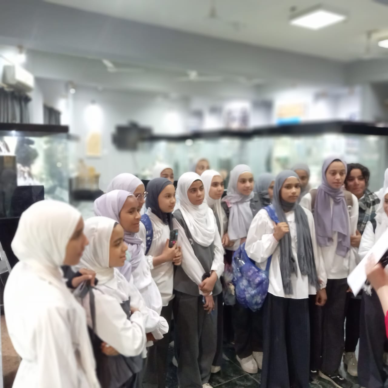وفي نهاية الجولة قامت الطالبات بأخذ الصور التذكارية لهن داخل اروقة المتحف.