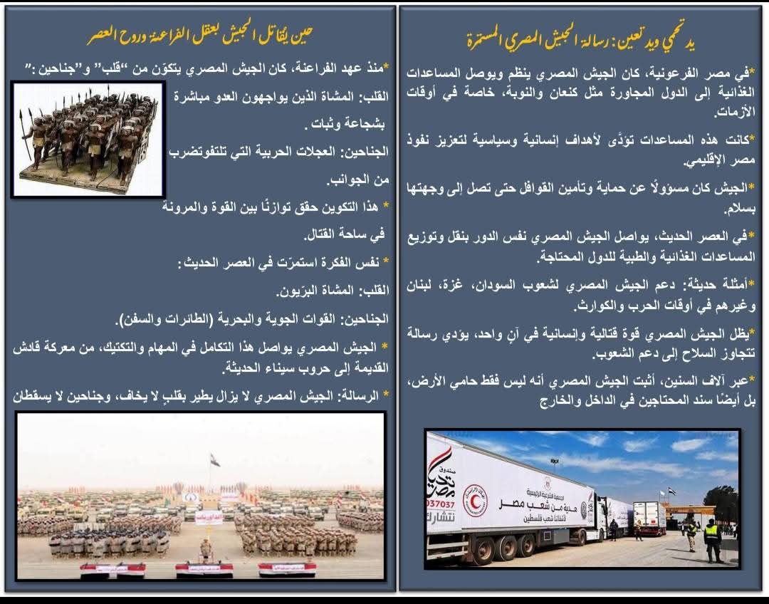 من أول المعارك القديمة لحد أرتال الجيش اللي واقف النهاردة بوعي، وإبداع، ومسؤولية وطنية لا تتغير ✨