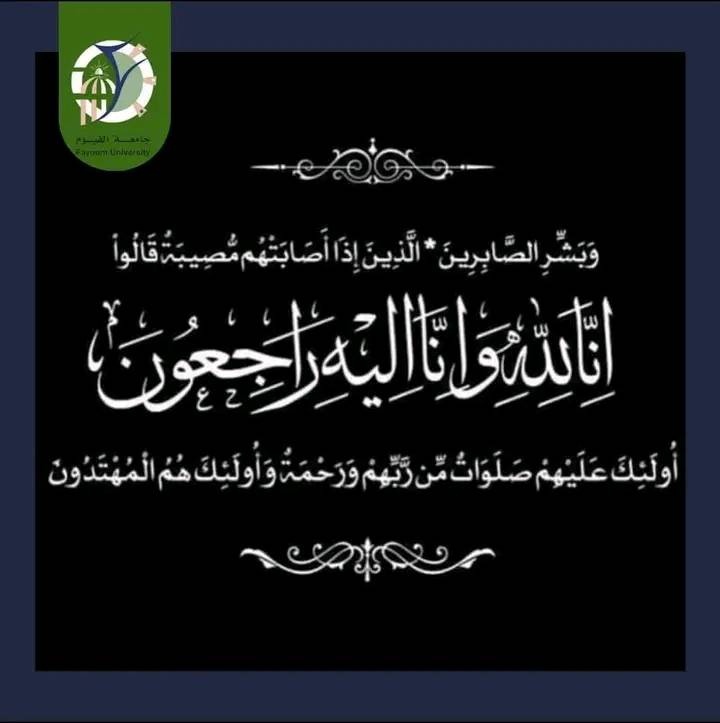 ببالغ الحزن والأسى ينعى الأستاذ الدكتور أحمد محمد أبو رية، القائم بأعمال عميد الكلية، بالأصالة عن نفسه وبالإنابة عن أسرة الكلية، وفاة (خالة) الأستاذ الدكتور/ عزت الجرتلي رئيس قسم اللغة العربية السابق، سائلين الله عز وجل أن يتغمد الفقيدة بواسع رحمته وغفرانه، وأن يسكنها فسيح جناته، وأن يلهم أهلها وذويها الصبر والسلوان.