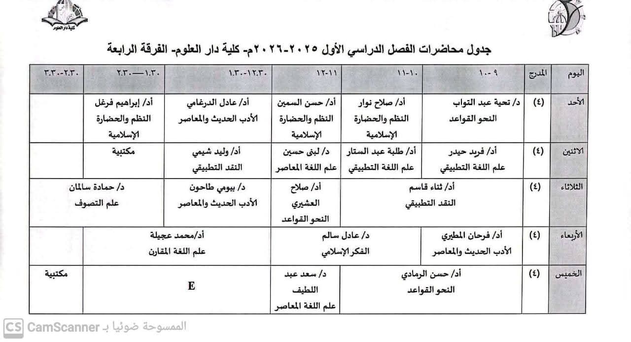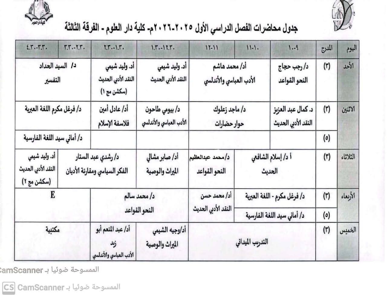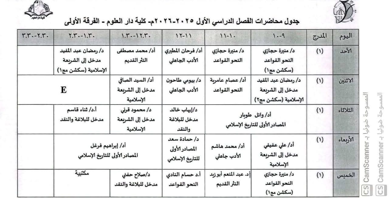 جدول محاضرات الفصل الدراسي الأول - العام الجامعي 3025-2026