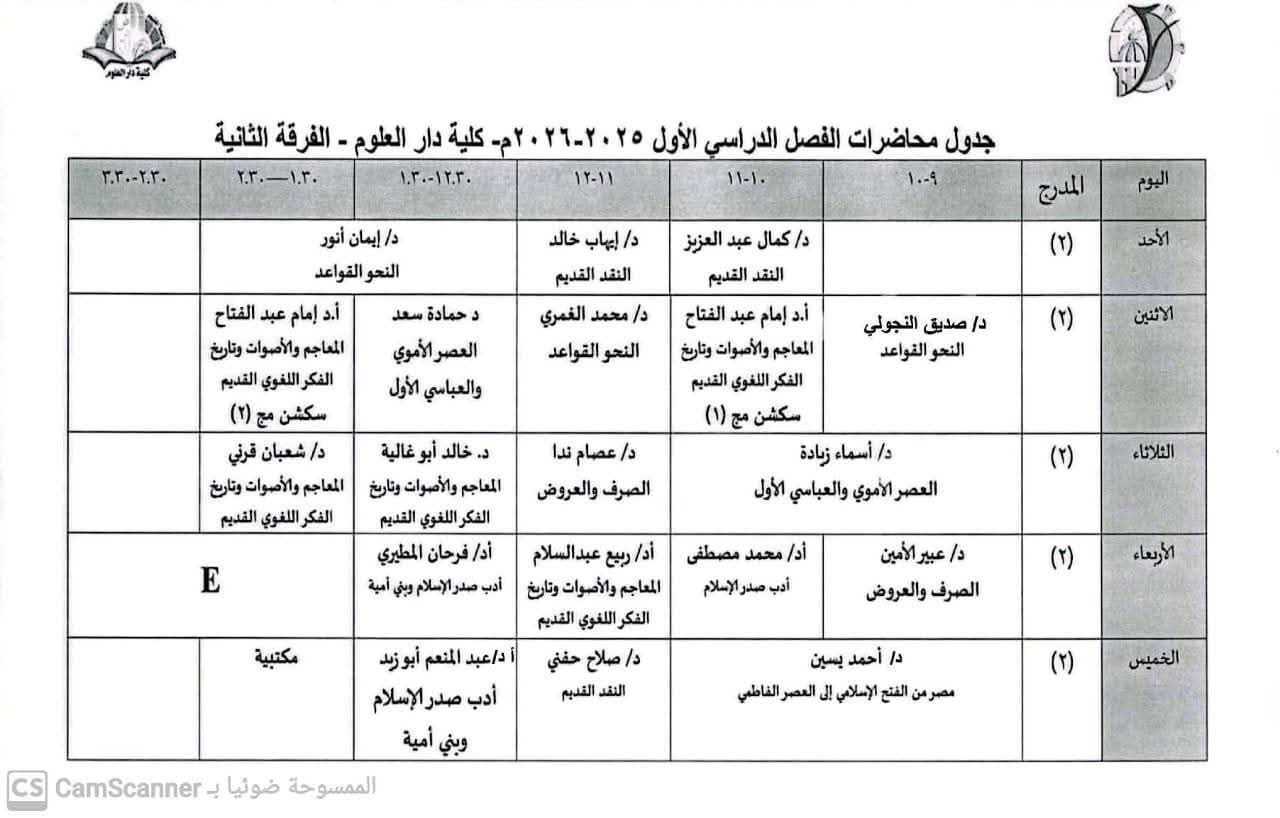جدول محاضرات الفصل الدراسي الأول - العام الجامعي ٢٠٢٥-٢٠٢٦م.