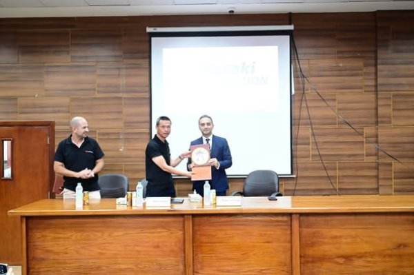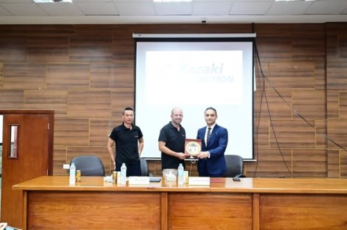 وفي الختام قام أ. د عاصم العيسوي بإهداء دروع التكريم للسادة ممثلي شركة يازاكي.