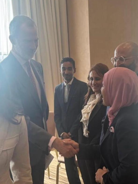 في إطار زيارة جلالة ملك إسبانيا فيليبي السادس ترافقه قرينته الملكة ليتيثيا ملكة إسبانيا لمصر حاليا، التقى جلالته مع كوكبة من أعضاء هيئة تدريس روؤساء أقسام اللغة الإسبانية بالجامعات المصرية وشاركت في اللقاء د/ مريم مفرح، مدرس بقسم اللغة الإسبانية ممثلة كلية الألسن جامعة الفيوم، وتناول اللقاء حوارا حول اللغة الإسبانية وما تحظى به من اهتمام في الجامعات المصرية وكذلك دور أقسام اللغة الإسبانية في الجامعات المصرية وجهودها في إعداد خريجين متمكنين من اللغة والثقافة الإسبانية.