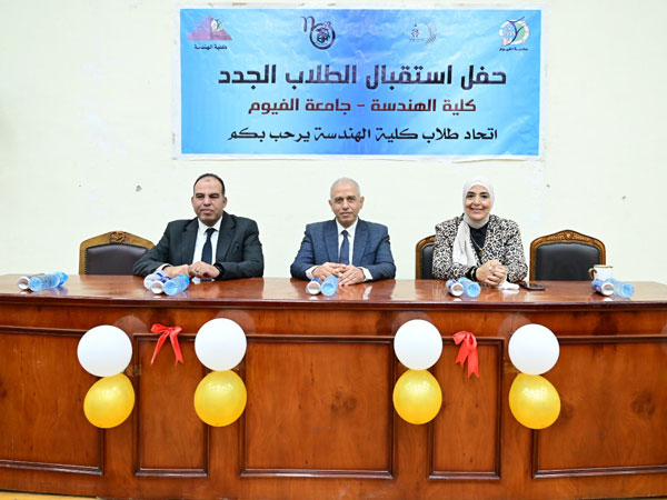 تحت رعاية الأستاذ الدكتور/ ياسر مجدي حتاته رئيس جامعة الفيوم، شهد الأستاذ الدكتور/ شريف العطار نائب رئيس الجامعة لشؤون التعليم والطلاب، فعاليات حفل استقبال الطلاب الجدد بكلية الهندسة، وذلك اليوم الاثنين الموافق 29 سبتمبر 2025 بقاعة المؤتمرات بالكلية.