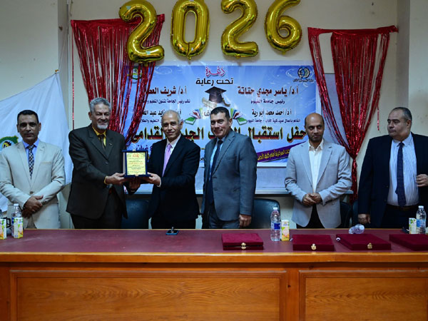 تحت رعاية الأستاذ الدكتور/ ياسر مجدي حتاتة رئيس جامعة الفيوم، شهد الأستاذ الدكتور/ شريف العطار نائب رئيس الجامعة لشؤون التعليم والطلاب، حفل استقبال الطلاب الجدد بكلية الآداب، بحضور الأستاذ الدكتور/ أحمد محمد أبو رِيَّه القائم بأعمال عميد الكلية، والأستاذ الدكتور/ محمد زايد عبد الله وكيل الكلية لشؤون التعليم والطلاب، والأستاذ الدكتور/ أحمد عبد العزيز بقوش وكيل الكلية لشؤون التعليم والطلاب السابق، والدكتور/ محمد كمال منسق الأنشطة الطلابية بالكلية، والأستاذ/ أحمد ربيع مدير عام الكلية، والأستاذ/ طارق عبد التواب العجري مدير رعاية الشباب بالكلية، وعدد من أعضاء هيئة التدريس والإداريين والطلاب، وذلك اليوم الاثنين الموافق 20 أكتوبر 2025 بمدرج (1) بالمدرجات المركزية.