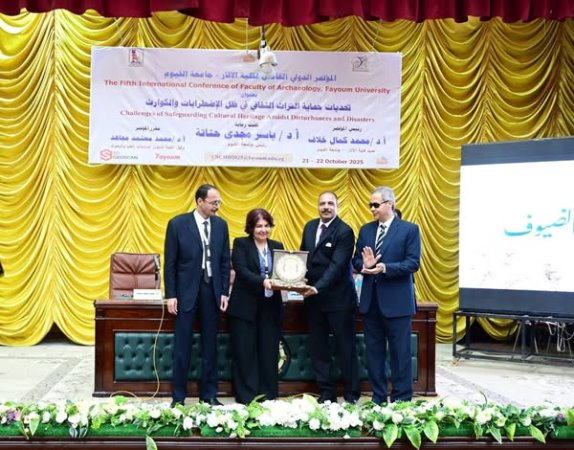 تحت رعاية الأستاذ الدكتور ياسر مجدي حتاتة، رئيس جامعة الفيوم، وإشراف الأستاذ الدكتور عاصم العيسوي، نائب رئيس الجامعة لشئون خدمة المجتمع وتنمية البيئة والقائم بأعمال نائب رئيس الجامعة لشئون الدراسات العليا والبحوث، شهد الأستاذ الدكتور محمد كمال خلاف، عميد كلية الآثار، انطلاق فعاليات المؤتمر الدولي الخامس تحت عنوان "تحدّيات حماية التراث الثقافي في ظل الاضطرابات والكوارث"، والذي تنظمه الكلية خلال الفترة من 21 إلى 22 أكتوبر 2025، بقاعة المؤتمرات الكبرى بالجامعة.