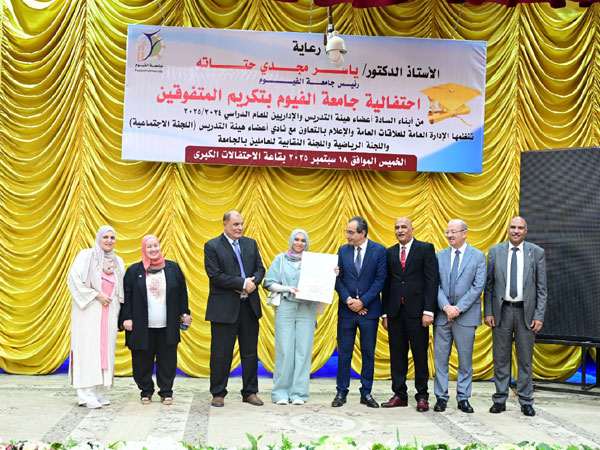احتفالية جامعة الفيوم بتكريم المتفوقين من أبناء أعضاء هيئة التدريس والإداريين