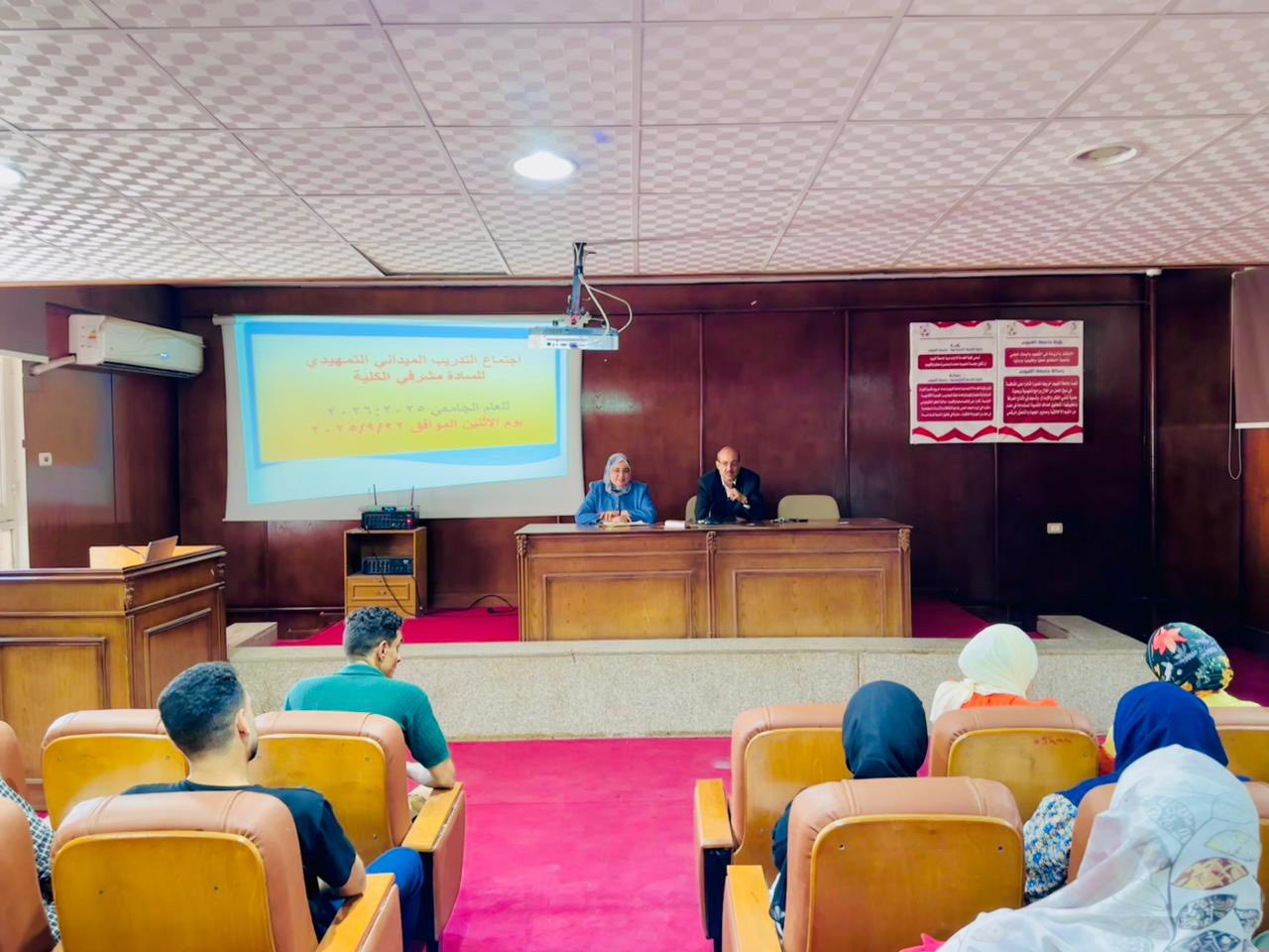 كما تم عرض اهم الملاحظات على التقارير الاشرافية و السماع الي ملاحظات واراء ومقترحات الحضور لتطوير الاداء وتحقيق جودة التدريب الميداني بالكلية